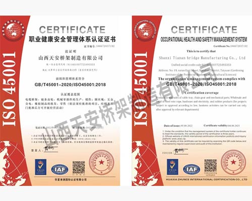 山西天安橋架制造有限公司是一家生產(chǎn)電纜橋架、母線槽的大型廠家,主要生產(chǎn):槽式橋架、托盤式橋架、梯級式橋架、大跨距橋架、母線槽有空氣型、密集型、耐火型、鋁合金等以及通風(fēng)管、可根據(jù)客戶要求定制各種型號各種規(guī)格,表面處理有熱鍍鋅、防火噴塑、防火漆、熱鍍鋅等,產(chǎn)品廣泛應(yīng)用于石油、化工、治金、電力、紡織、通訊、高層建筑等各個領(lǐng)域。產(chǎn)品具有外形美觀,耐腐蝕性強,安裝靈活方便,品種齊全等特點。